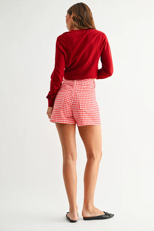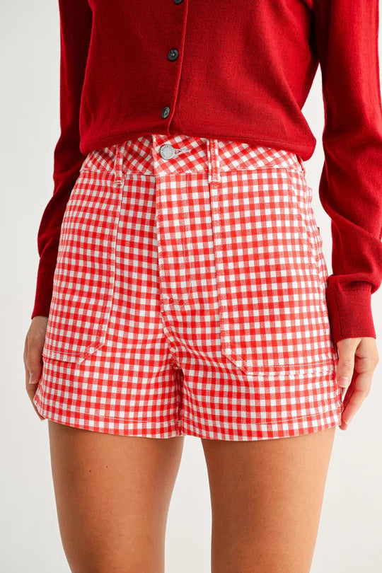 Just Black Denim - High Rise Utility Cargo Short | Red Gingham
