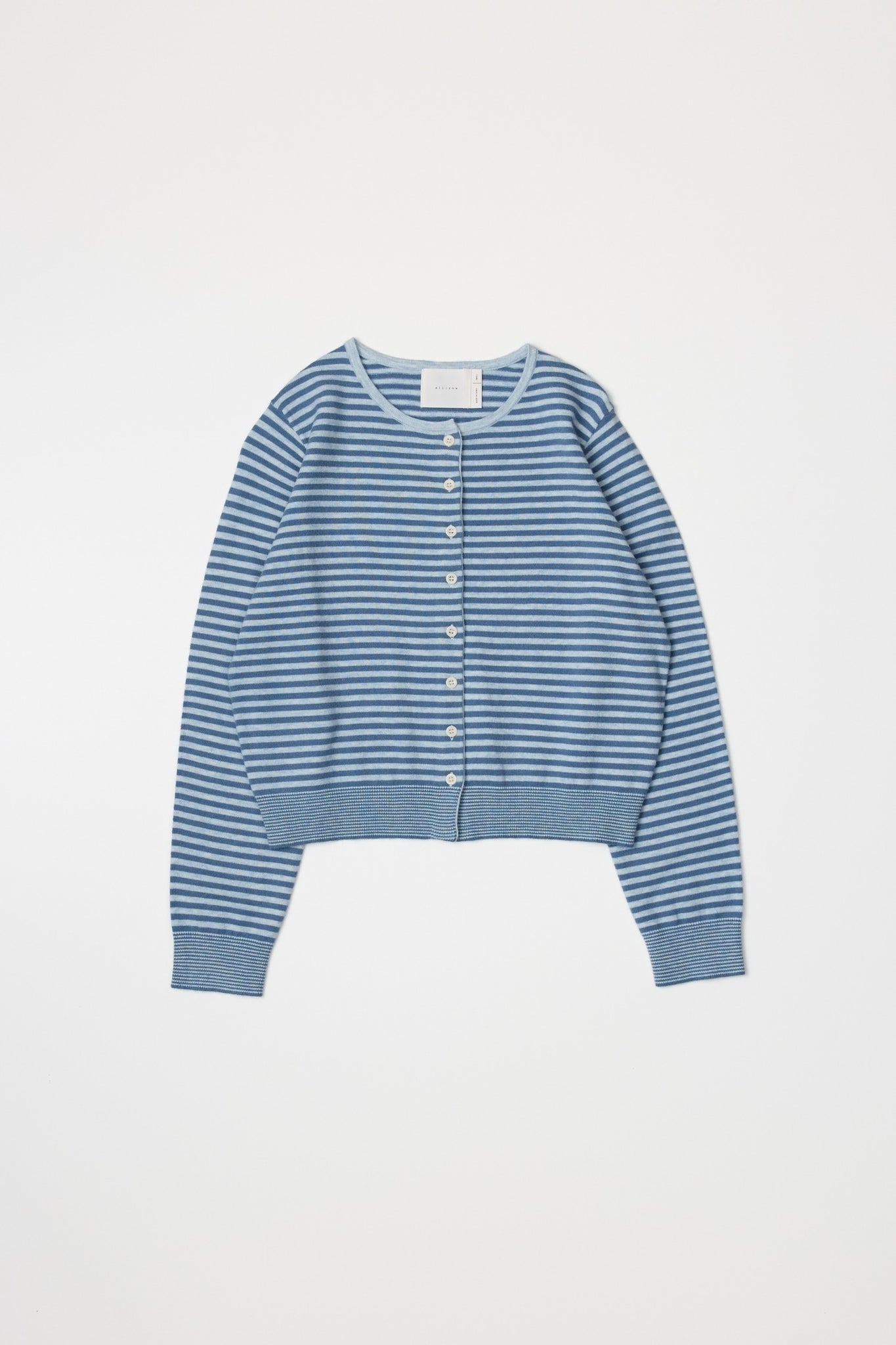 The Montana Cardigan is a lightweight, long-sleeve stripe knit cardigan with a relaxed fit, button-down closure, and a subtle front bottom slit.