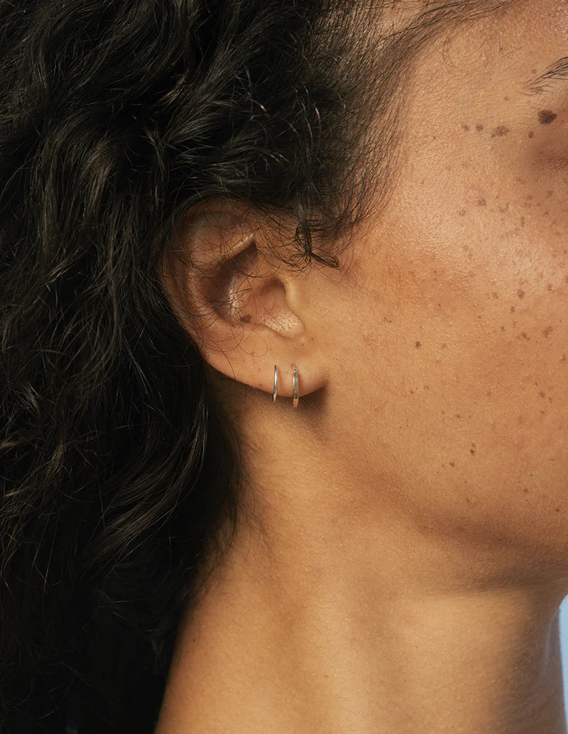 A Baleen favorite, reimagined. The Mix-Mix Nautilus Hoop takes our signature square-wire Nautilus design and gives it a fresh twist with mixed metals. One side is crafted from warm gold-filled wire, the other from sleek sterling silver — together creating a hoop that’s modern, versatile, and endlessly wearable. Like the original Nautilus, it threads through the ear to create the illusion of a double hoop, but this version adds a playful contrast that pairs perfectly with everything in your jewelry box.