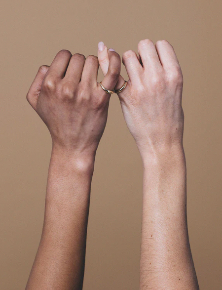 The Pinky Promise Ring is a tiny band for your pinky with the inscription of "pinky promise"on the inside. A beautiful, clean, bulbous band is a perfectly discreet reminder of that promise to a friend, a lover, or to yourself.