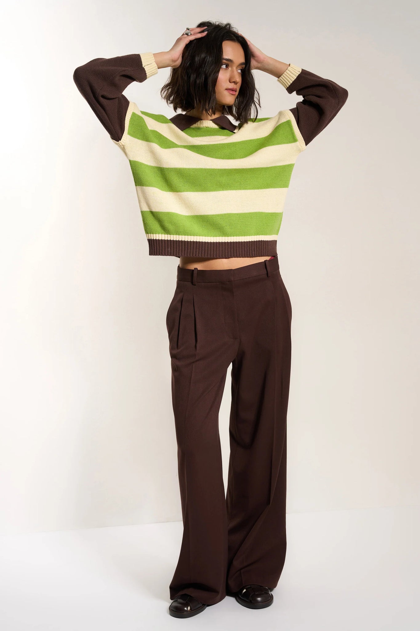 Prep school is in session with the retro-inspired Archie Pullover. This oversized cotton blend sweater features a built-in collar detail and a stripe body for that classic, collegiate look.