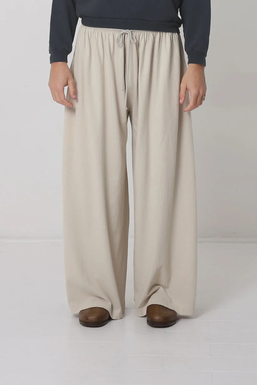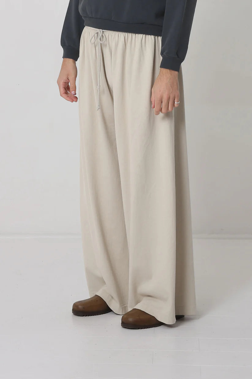 Fit is drapey and voluminous, with an ultra wide leg, elastic waistband, extra long drawcord, and side pockets.