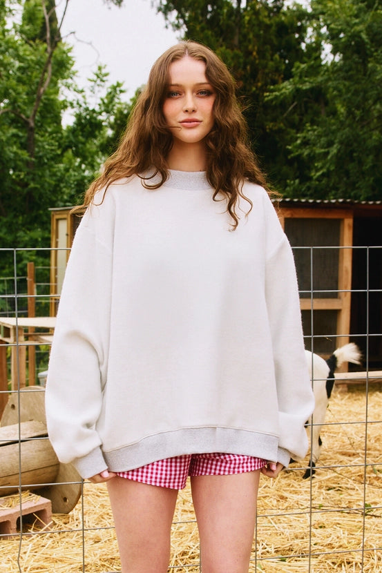 Mock-neck - Drop shoulder, long sleeves - Softest cozy fleece - Oversized fit - Rib banded hemline and cuffs - The reversible design lets you switch up your style.