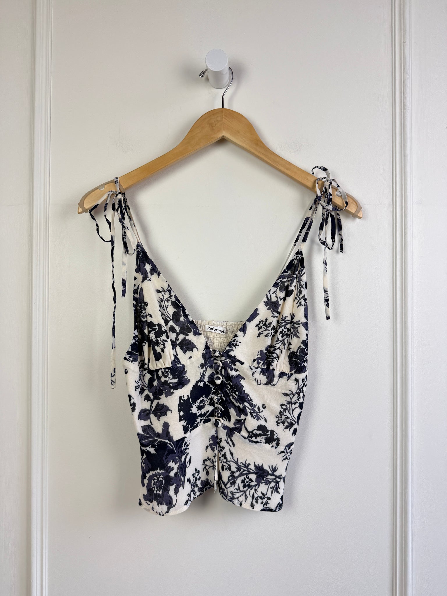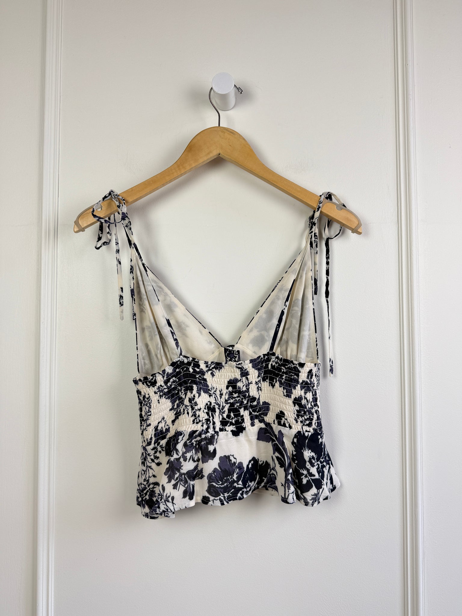 DETAILS: floral details throughout ; elastic on waistband ; adjustable straps