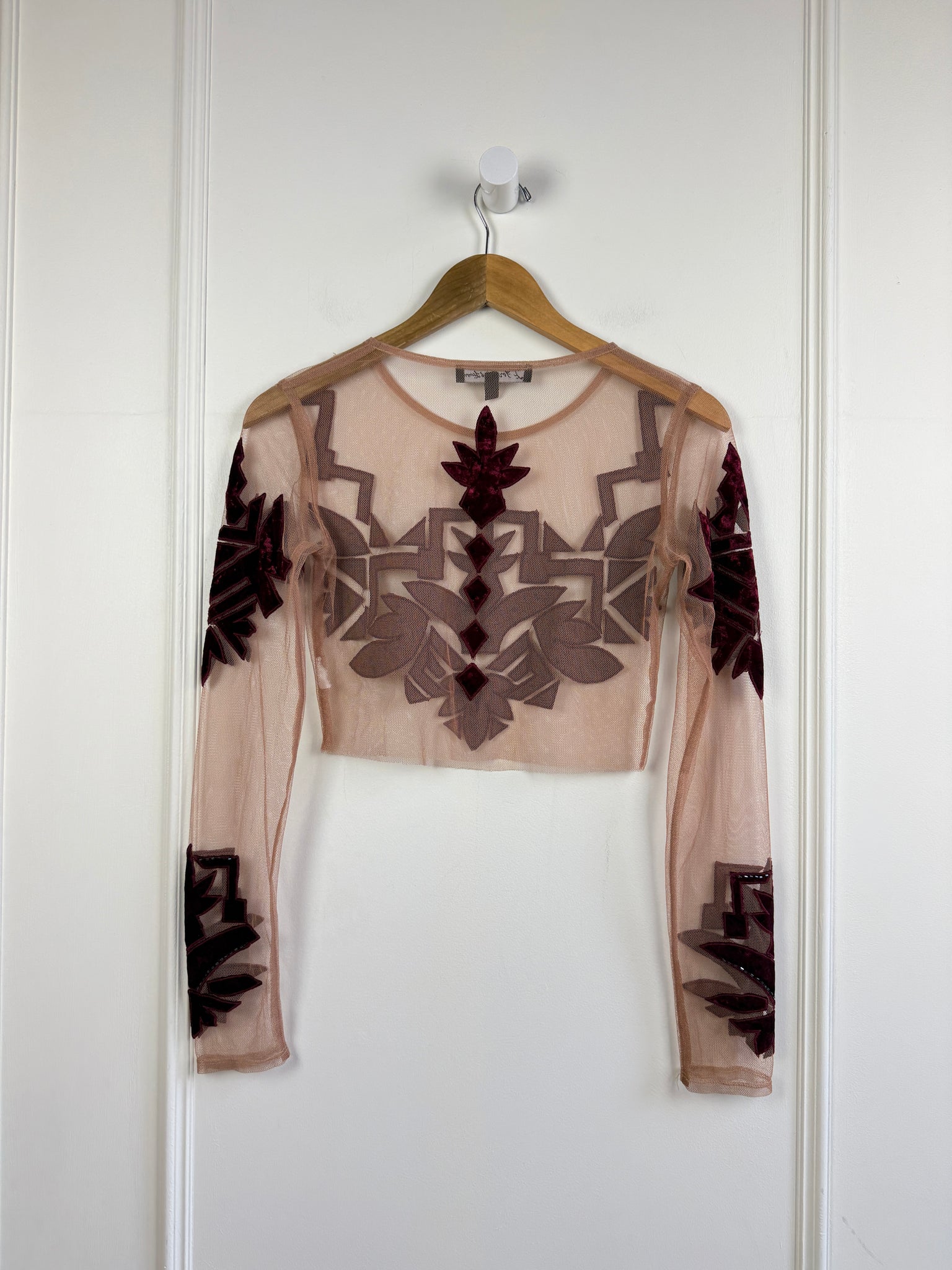 DETAILS: sheer ; velvet detail throughout