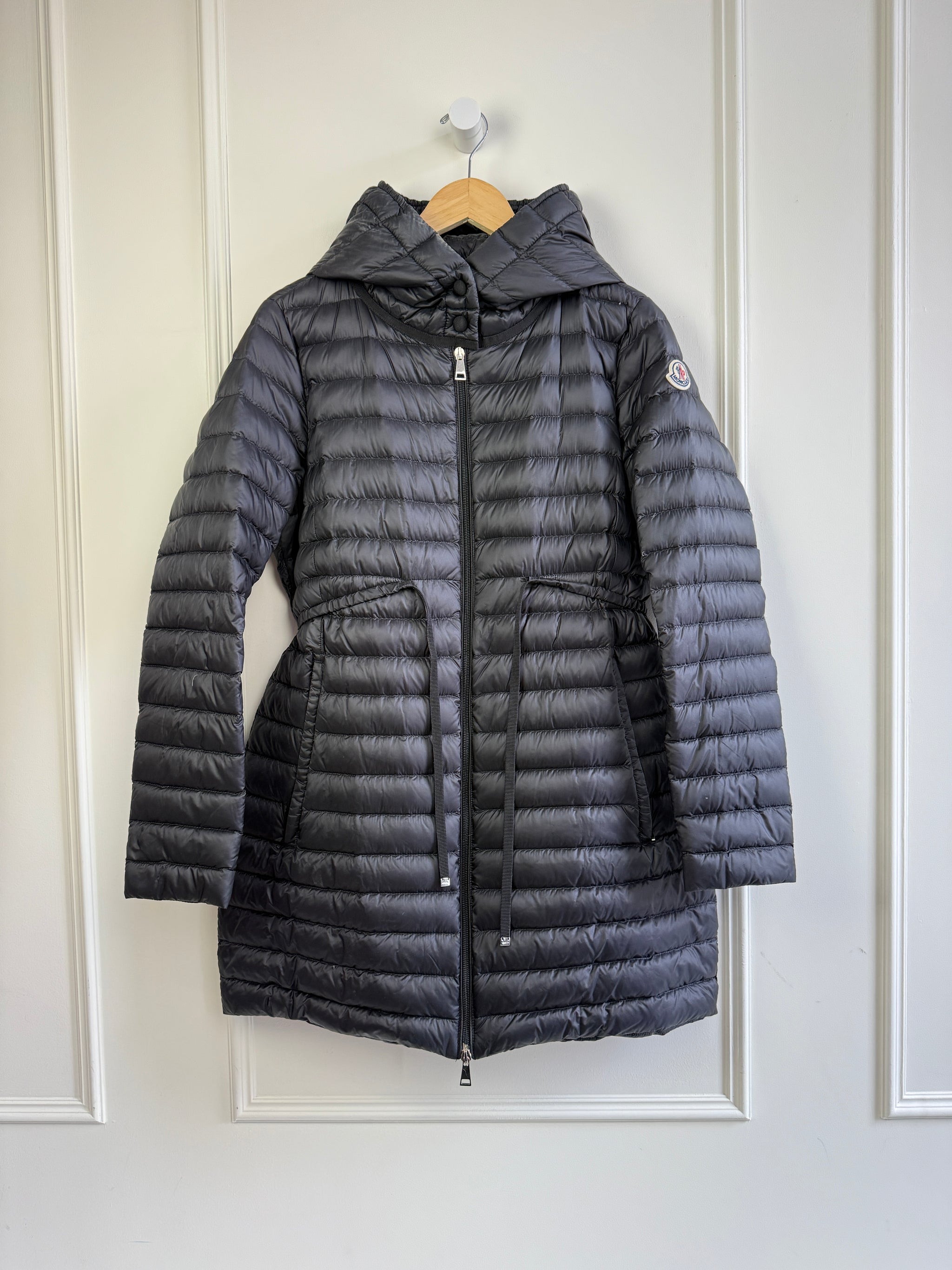 Moncler Barbel Hooded Fit & Flare Long Down Jacket (S)