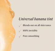 Non-greasy, pore-smoothing sun protection. Universal banana tint creates a brighter appearance and instantly blends out on all skin tones. Enriched with Vitamin E, Chamomile, Aloe Vera, and Pomegranate Extract.