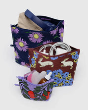 Our Go Pouch Set makes it easy to keep your bag neatly packed and organized. Whatever you're toting—coins, cords, or an extra pair of shoes—this set of three all purpose pouches keeps it together. They expand to hold your essentials and lay flat when not in use.
