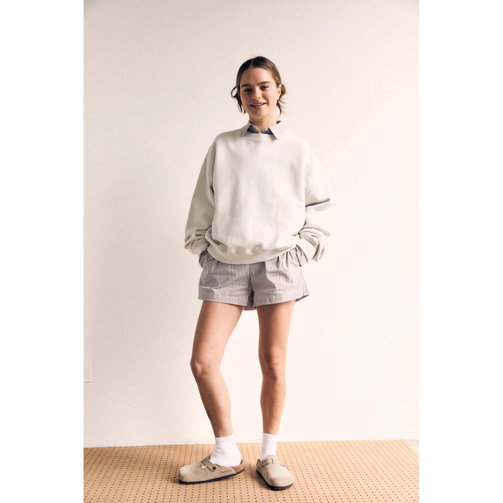 This oversized sweatshirt combines effortless comfort with distinctive style. Crafted from a HEAVYweight, high quality vintage inspired fabric, it offers a soft, worn-in feel while maintaining durability. The unique seam line adds, elevating the classic silhouette with modern detailing.