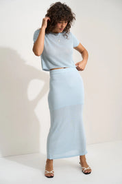 Equal parts comfy and cute, the semi-sheer Clover Maxi Skirt is made from a luxe blend of linen and Tencel and features a half slip, subtle side slit, and sleek body-hugging fit. Pair it with the Clover Tee or literally anything else.