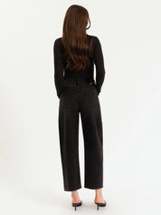The Westward in Night Life is a high rise jean with a barrel leg silhouette. Featuring a cinched waist, bowed leg, and slightly tapered ankle against a faded black wash, this jean is as versatile as it is flattering.