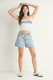 Just Black Denim - Elastic Waist Mom Short | Light Denim
