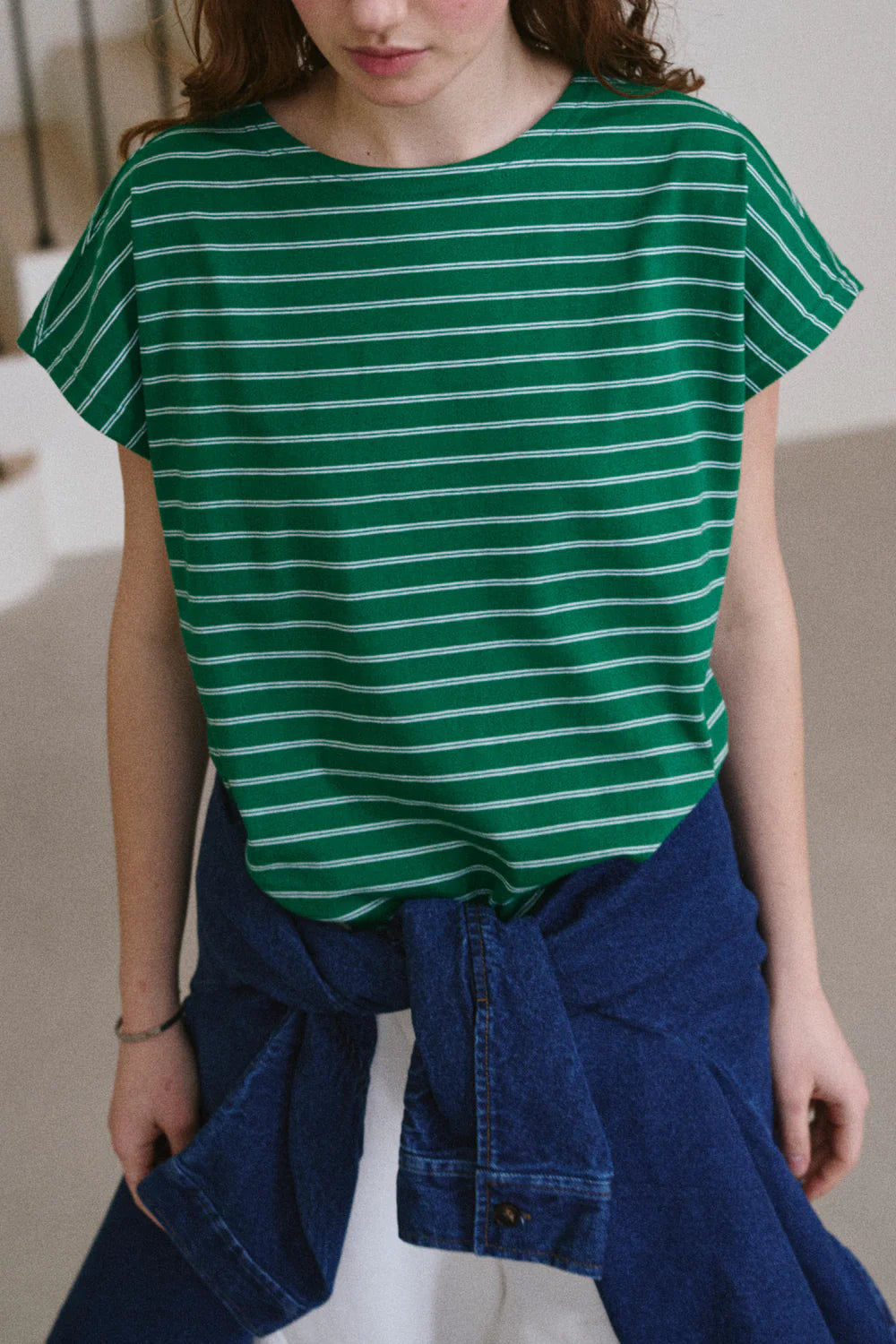 Drawing inspiration from the Jeanne Tee, this top features signature dolman cap sleeves and a refined boxy fit. The length offers ideal coverage—not too cropped, yet not too long. A wider round neckline lends an effortless touch, while the mid-weight cotton feels soft and maintains its structure. The perfect balance of comfort and style, designed for everyday ease.