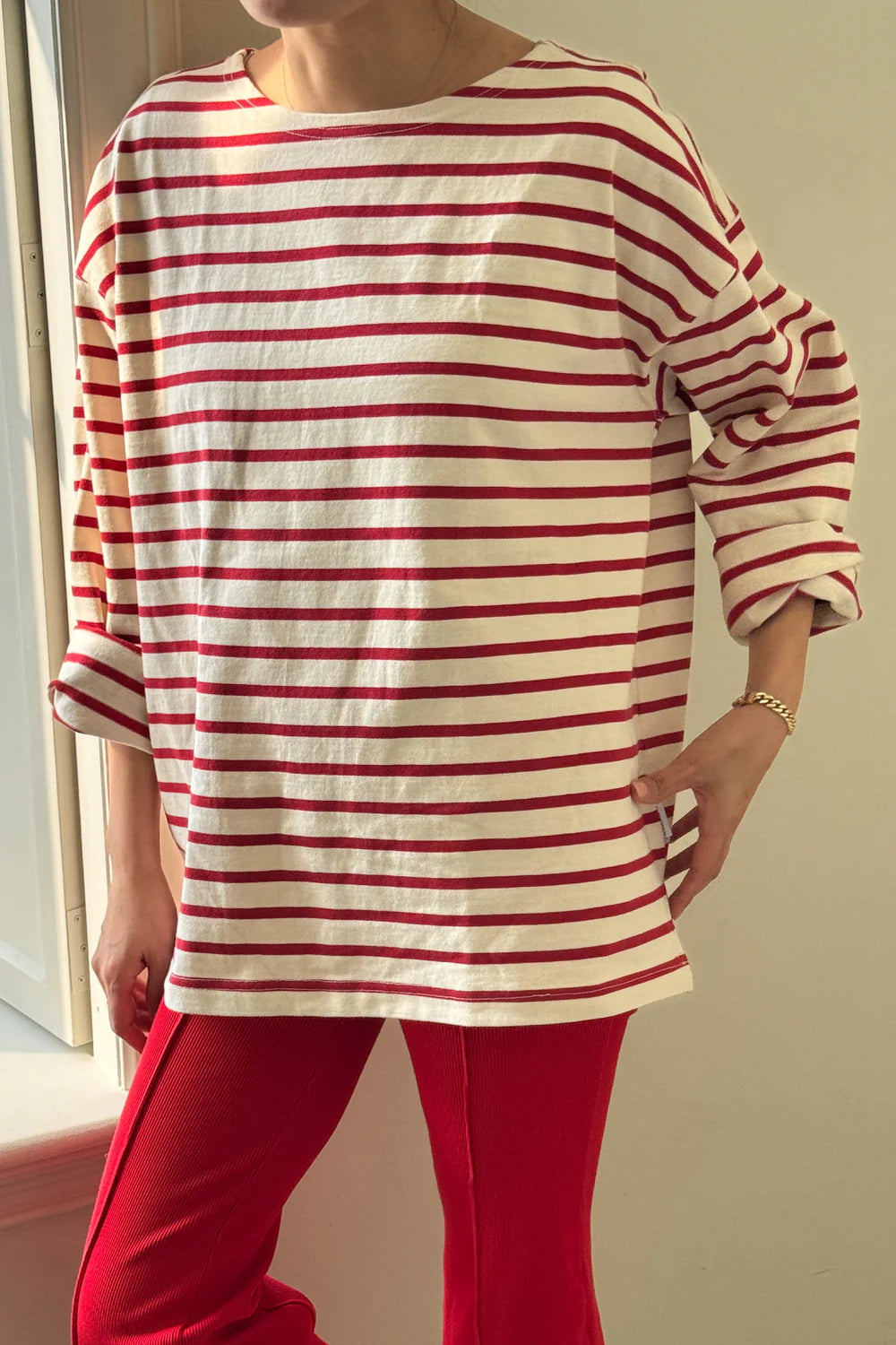 Add a touch of Parisian flair to your wardrobe. The Marseille Top takes inspiration from the timeless Breton stripe uniform, featuring a classic boat neckline and an oversized, full-length fit that gently sweeps the hips. Crafted from durable, heavyweight cotton, it offers structure without sacrificing softness, making it an ideal choice for both elevated and casual looks.