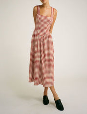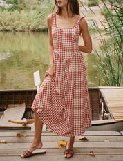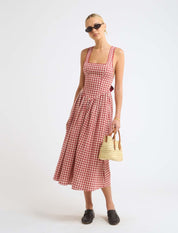 This is how a fashion girl does gingham. Designed with a fitted bodice and square neckline for a modern feel, and a sweet skirt and bow-adorned low back for a touch of classic country charm